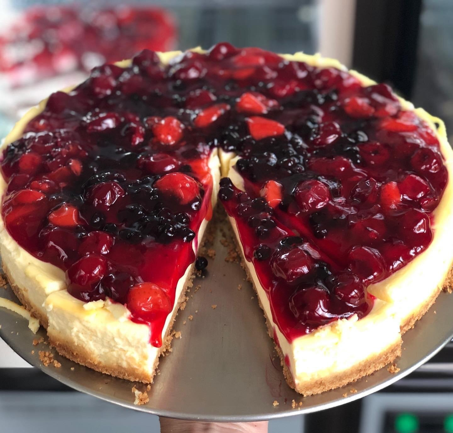 Typický americký zákusek, který pod neznámým názvem skrývá lahodný tvarohový dort. Má dlouholetou tradici a zkušený labužník ví o co se jedná. Je to luxusní dort vyrobený z tvarohu, jehož zajímavou chuť určitě oceníte. Pro zpestření vzhledu a pro lahodnější chuť zdobí dort lesní ovoce.