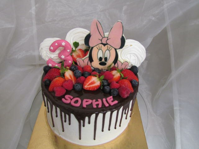 Dort s náplní dle Vašeho zadání. Zdobení dle fotografie, nápis a obrázek je možné změnit. Dort je obmazaný mascarpone krémem a politý čokoládovou polevou. Náplň můžete vybrat: Náplň nabízíme: a) Šlehačkový krém se zakysanou smetanou b) Pistáciový krém c) Pudingový krém – vanilka nebo čokoláda, d) Pařížská šlehačka e) Karamelová šlehačka f) Mascarpone krém g) Kokosový krém ala Raffaello h) Chocolate mousse – čokoládová pěna - bílá nebo hořká i) Tvarohový krém ala "Míša"