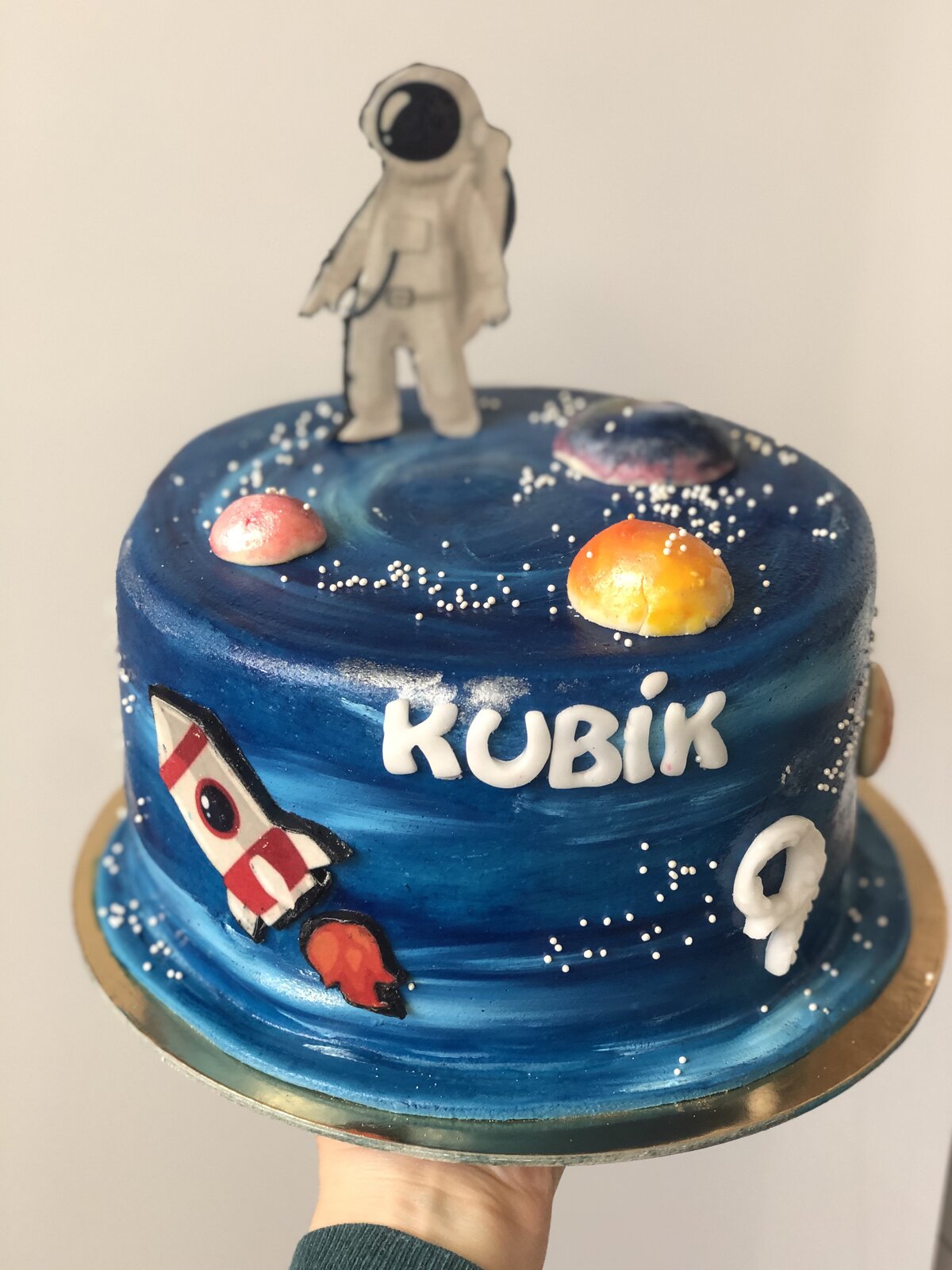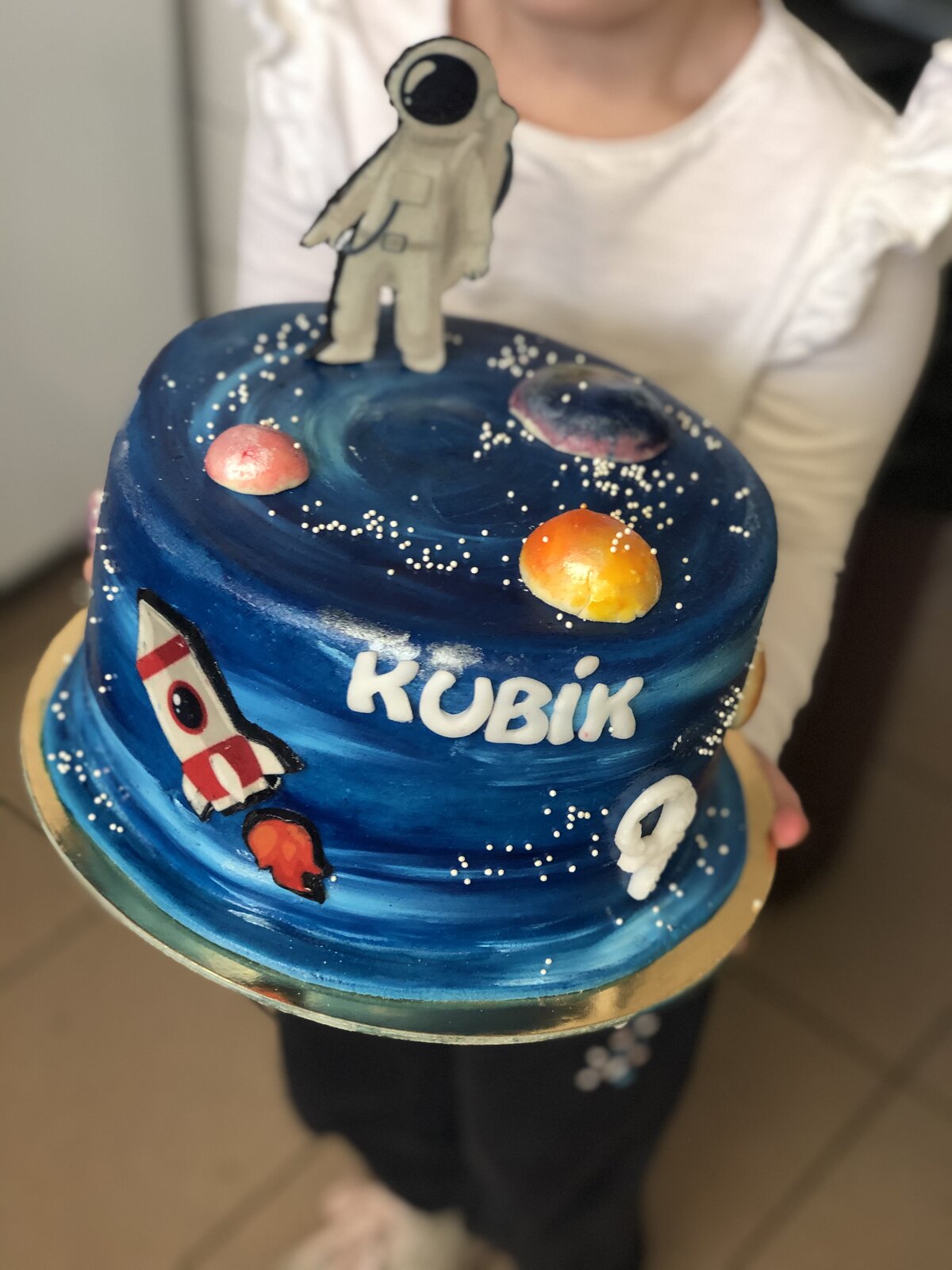 Náplň tvoří vanilkový piškot a můžete zvolit a) šlehačka se zakysanou smetanou a jahodami, b) pařížská čokoládová šlehačka. Dort je potažený a zdobený domácím mléčným marcipánem a obrázkem na jedlém papíře. Dort je možné barevně nakombinovat podle přání zákazníka. Nápis nebo číslice není problém. Velikostně dort stačí pro cca 10 lidí.
