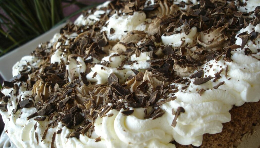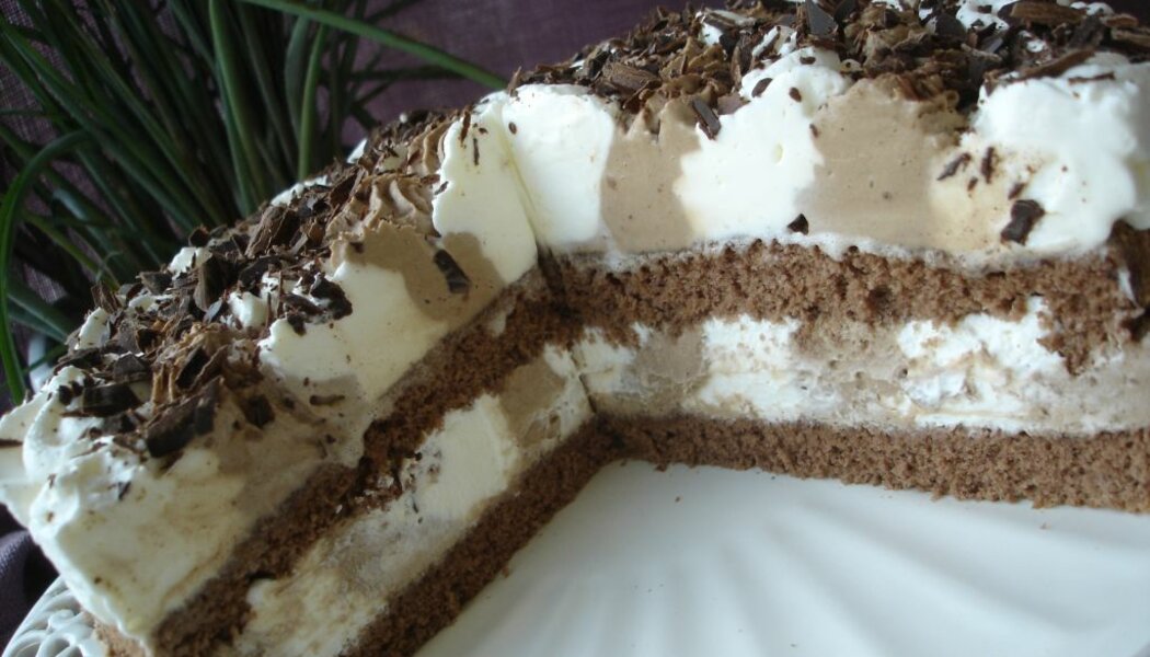Nezapomenutelná česká klasika. Lahodné spojení jemně našlehané čokoládové a klasické šlehačky a nadýchaného kakaového piškotu- Celý dort je dozdoben čokoládovými hoblinkami.Pro milovníky lehkých dortů. Nápis na dort: 50,-Kč