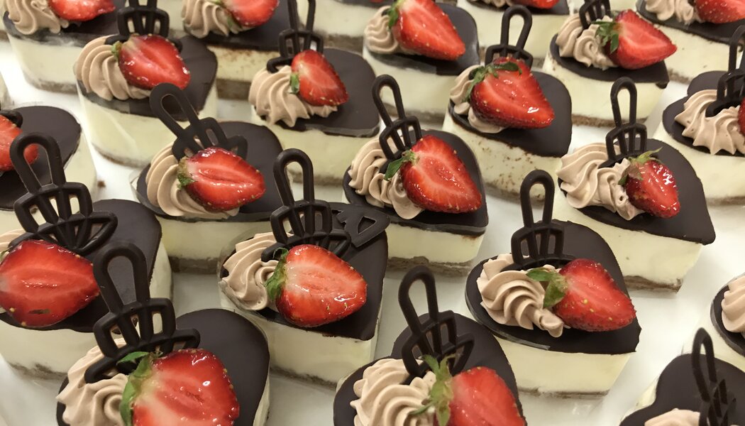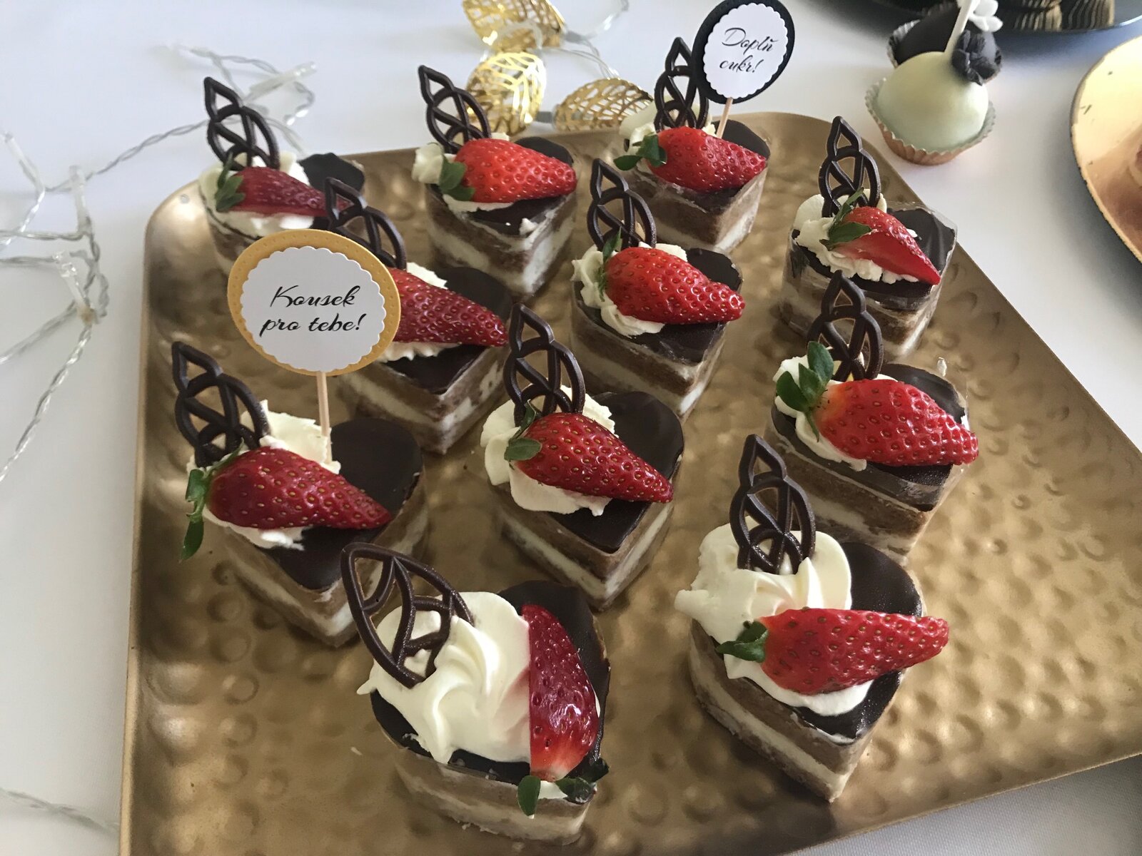 Mini dezert s lahodným tvarohovým krém s čokoládovou polevou, tak jak ho znáte ve zmrzlinové podobě. Dozodbeno čertvým ovocem a čokoládovou ozdobou.