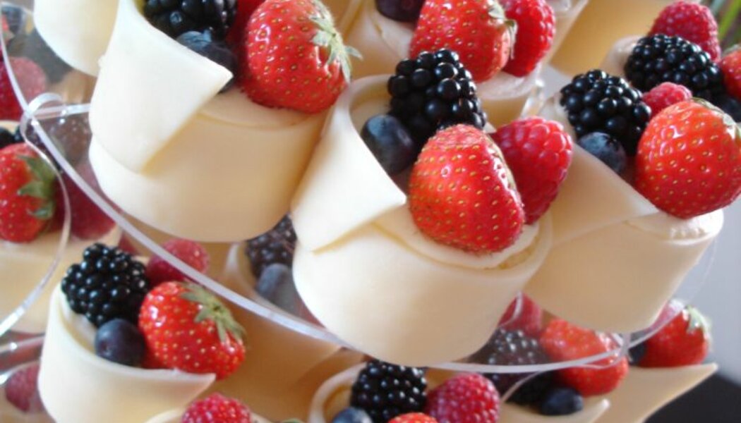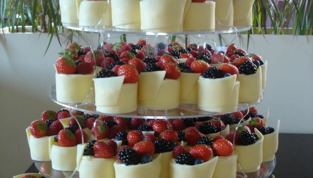 Tyto malé dortíčky mohou být naplněny krém, který si zvolíte. Obaleny jsou v plastické bílé čokoládě a dozdobeny čerstvým ovocem. Počet minidortíčků si určujete sami podle počtů hostů. Cena dortíků se odvíjí od celkové váhy dortíčku, 1ks vážívá okolo 100g.Celkový vzhled a provedení dortu domluvíme osobně
