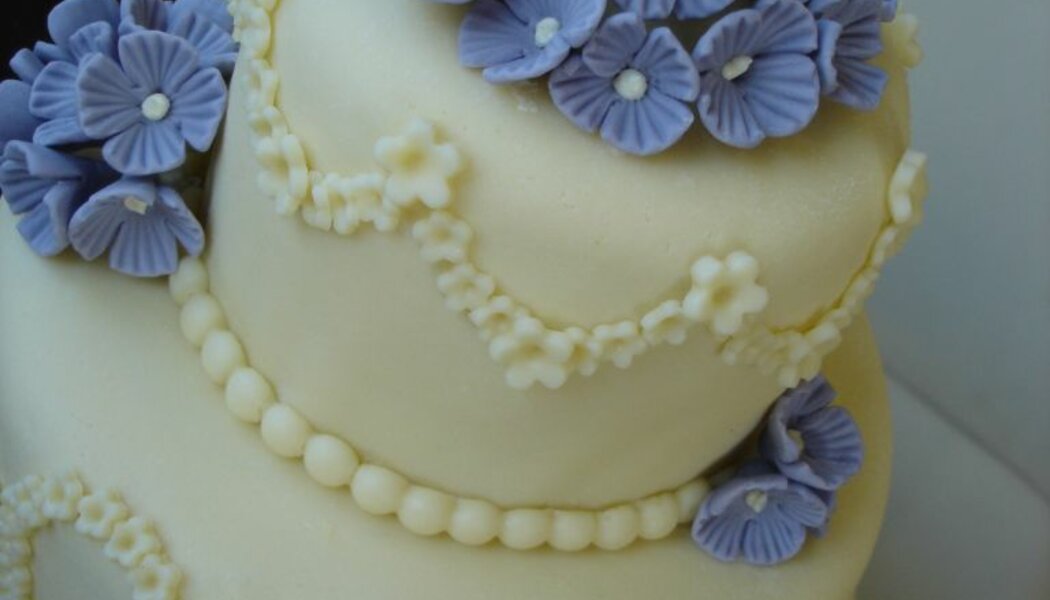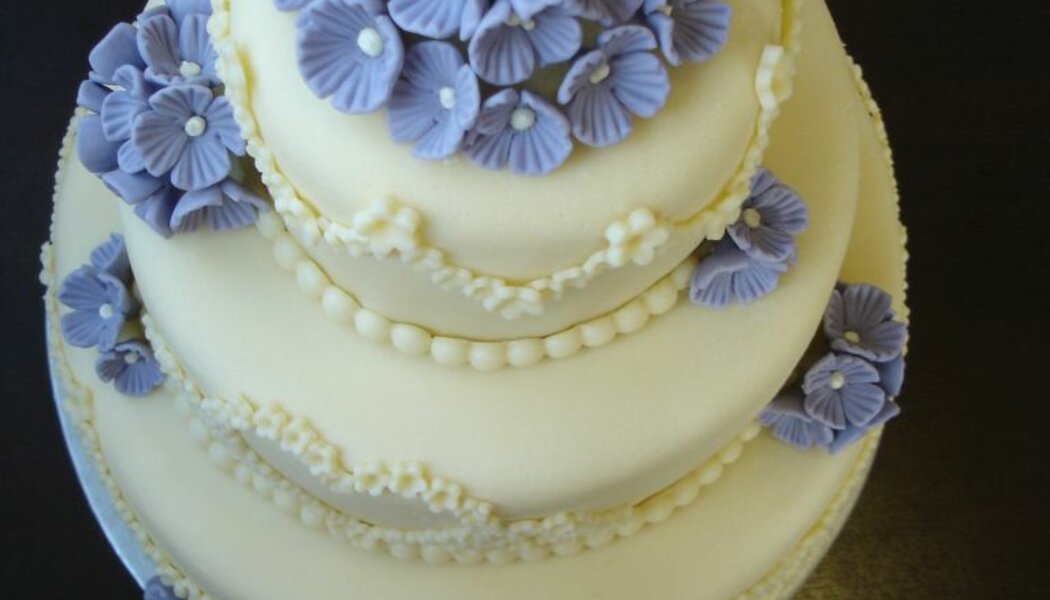 Svatební dort s fialkovými kvítky