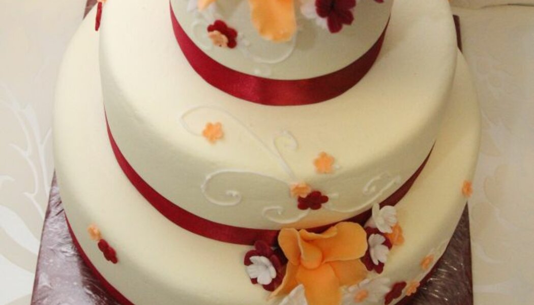 Uživatelské recenze Svatební dort s oranžovým a vínovým zdobením