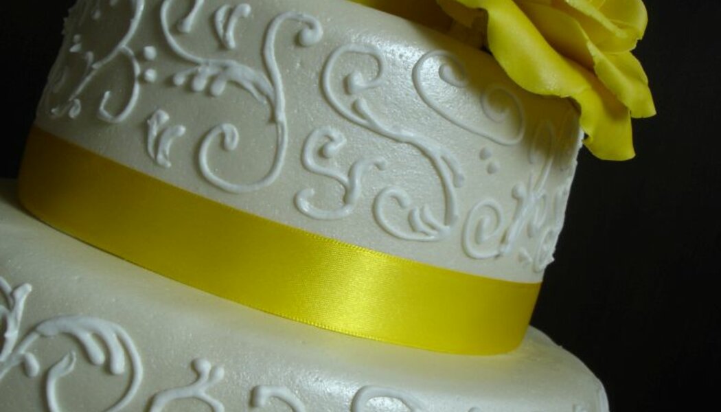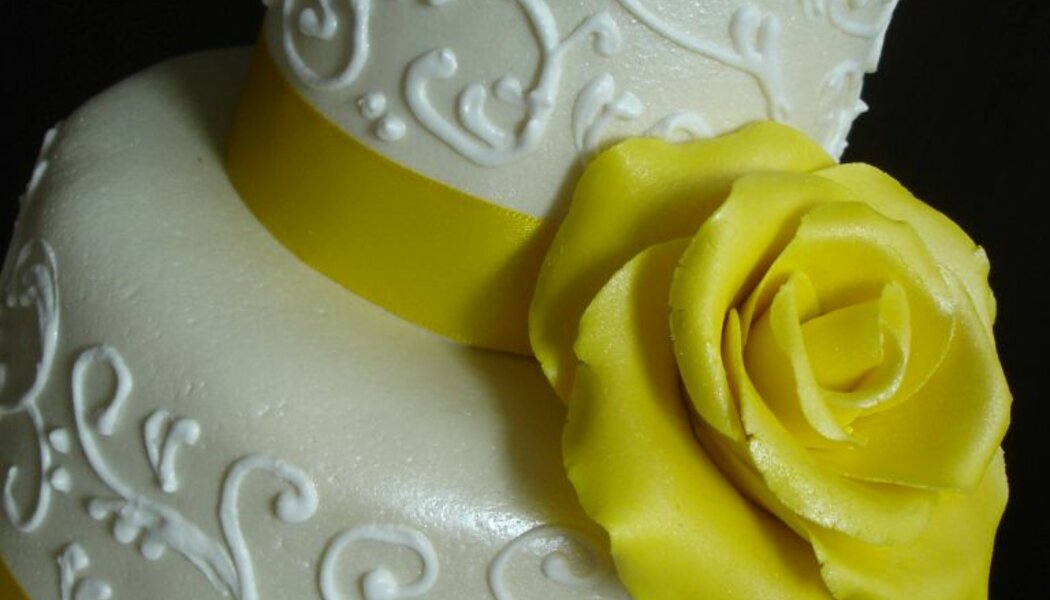 Svatební dort se žlutou růží