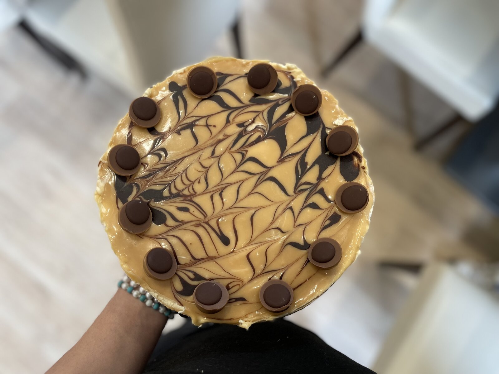 Mascarpone, šlehačka, karamel a kousky lískovým oříšků - to vše zalité pořádnou vrstvou karamelu.