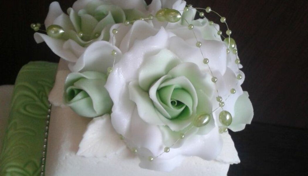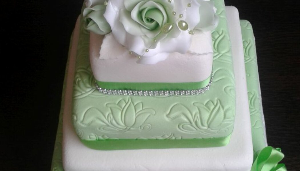 Uživatelské recenze Zelenkavý svatební dort s růžemi a kamínky